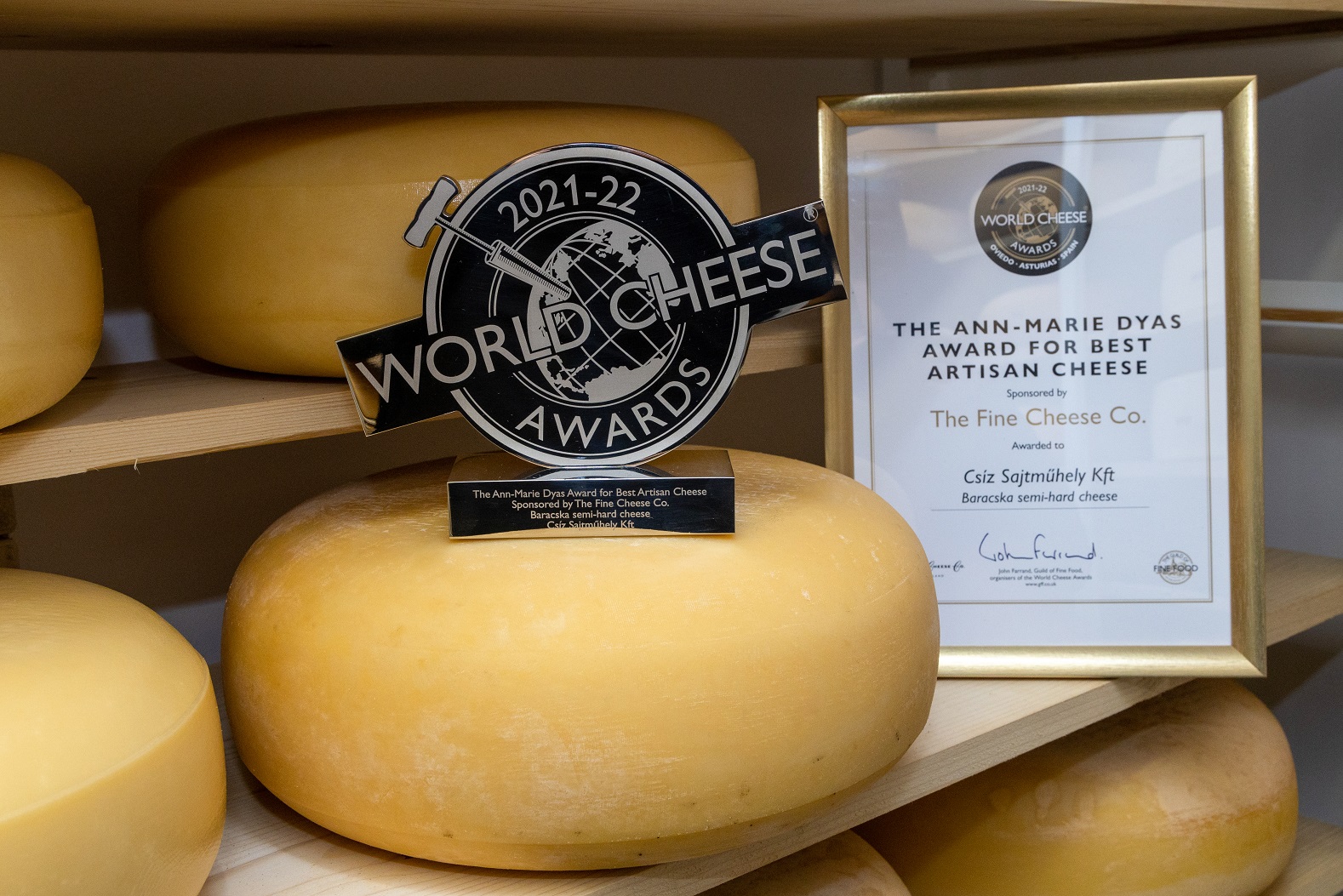 Ha Anitának egyetlen sajtot kellene ajánlania a Csíz Sajtműhely választékából, akkor az mindenképp a Baracskai félkemény volna: az a bizonyos híres öregsajt, amely megnyerte 2021-ben Spanyolországban a legjobb kézműves sajt díjat. Ahogy Anita beszél erről a sajtról, rögtön érezzük, hogy nem véletlenül lett ez a legjobb a legjobbak között: „Rendkívüli, kiváló sajt, kristályos szerkezetű, kis ropogós, kellemes lágyan olvadó, karamellás ízű – szóval egy csodálatos termék.”